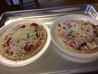 I then had the girls assemble their mini pizzas while the grill warmed up: