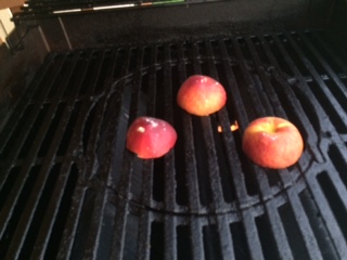 I removed the pits and then sprayed with a little bit of “it’s not really butter but tastes like it”. We put them face down on the grill:
