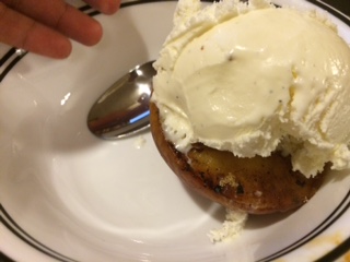 Close the lid with the grill off and let the brown sugar melt. We brought our little gems in the house, drooling. DELECTABLE. We thought MB might like them with a spoon of ice cream, and, well, no words to explain it. They are really good without the ice cream – that’s how my helpers and I ate them. I’ll be making this at the lake this summer. Nothing easier and more delicious!