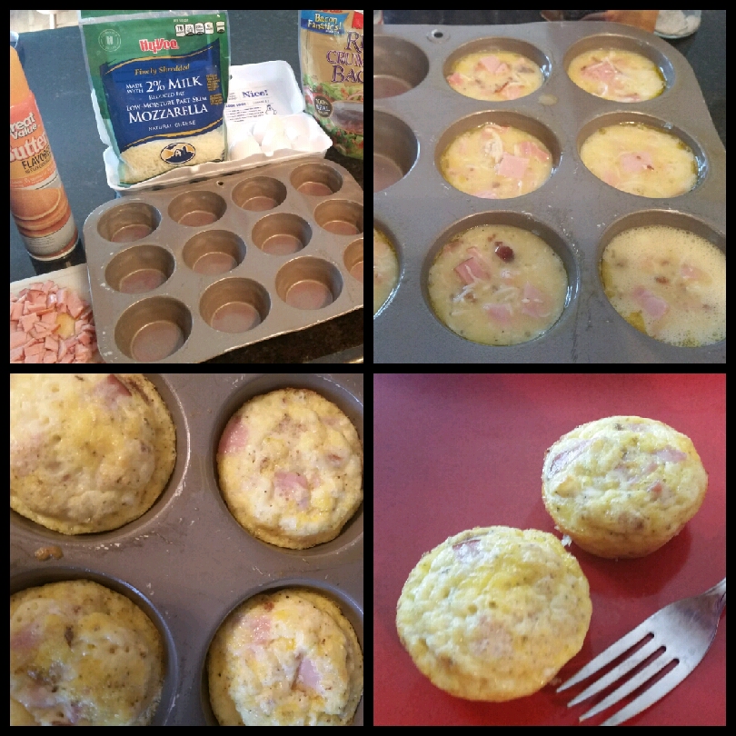 Assemble chopped veggies and meats, and your choice of grated cheese(s), and sprinkle in muffin tins. Beat desired amount of eggs and add to muffin tins. Bake approximately 15 minutes or until centers are set. Cool on wire rack. Refrigerate or freeze for use later. Microwaves well.