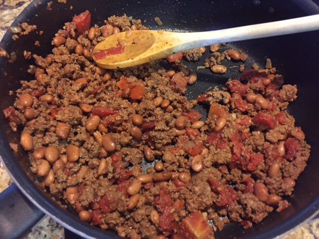 I ran across this recipe and did “my thing” to it to spice it up a bit. And, with the meat/bean mixture left over, I did a tortilla stack for dinner last night. Super easy, quick and economical!!!